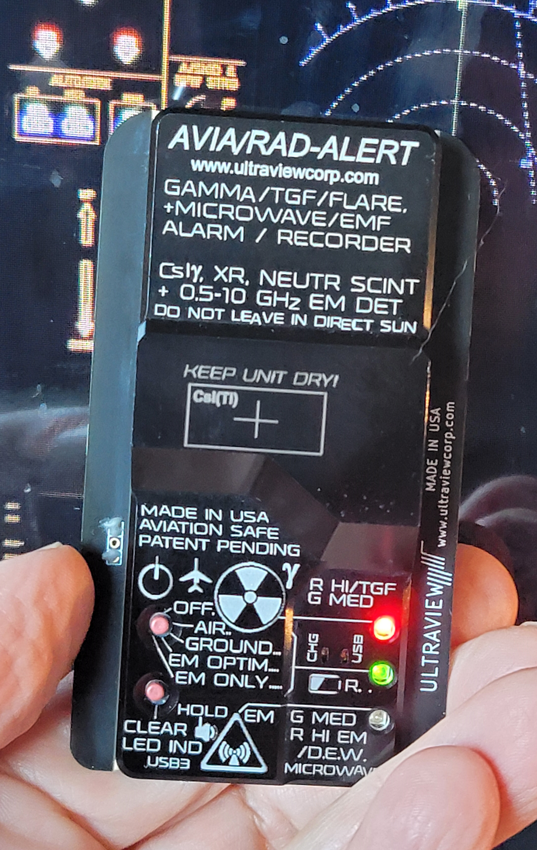 Pocket AVIA/RAD-ALERT warns of solar flare neutrons and radiation and Terrestrial Gamma Bursts, both of which may pose hazard to passengers, crews, and avionics